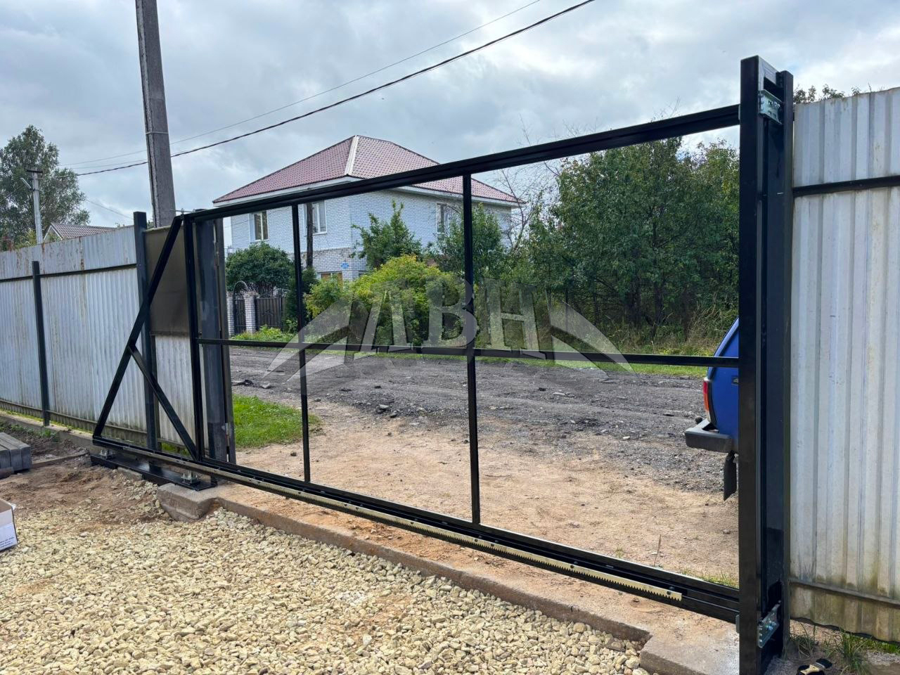 Каркас откатных ворот под ключ. Сданный объект - г. Гатчина, ул. Огородная.