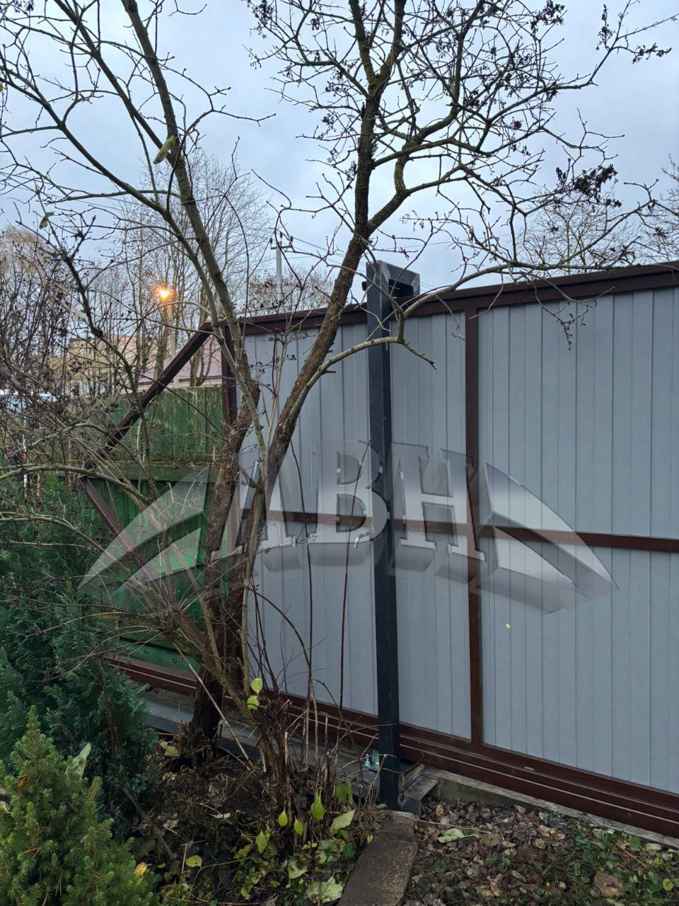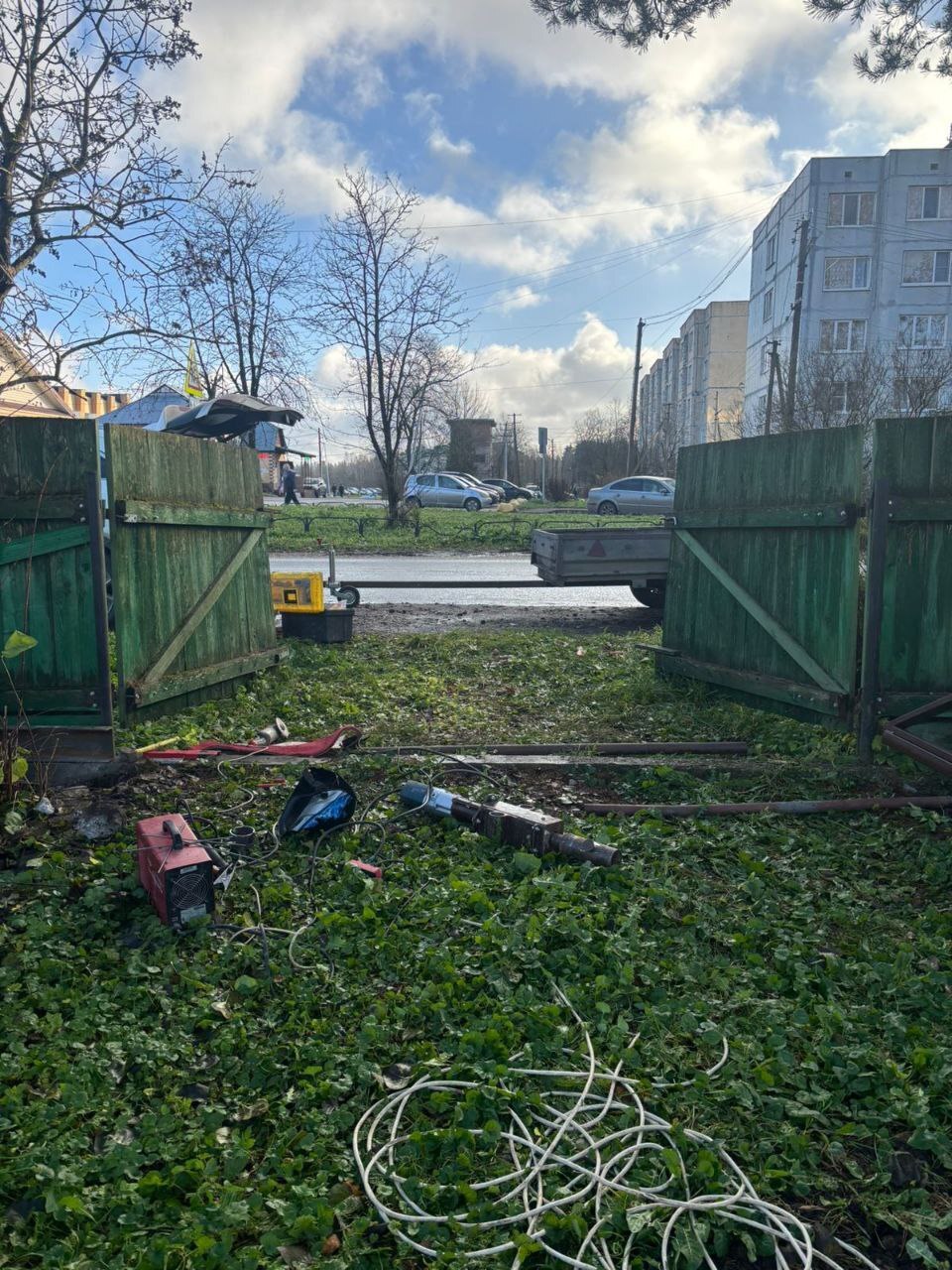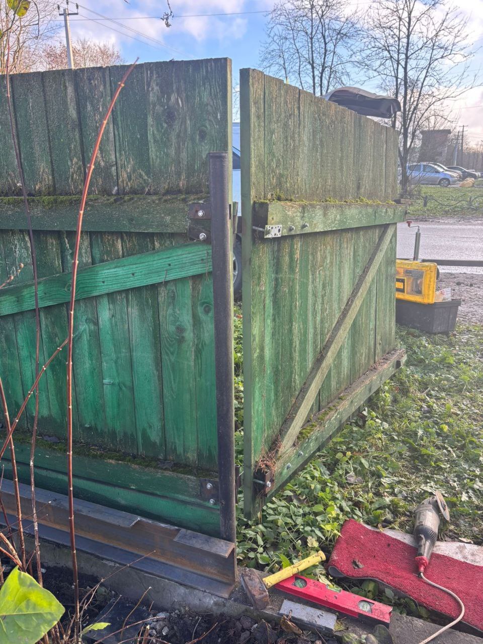 Откатные ворота, обшитые профлистом, под ключ с демонтажом старых ворот. Сданный объект - Ленинградская обл., Гатчинский р-н, д. Сяськелево.