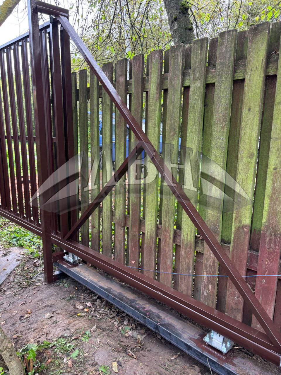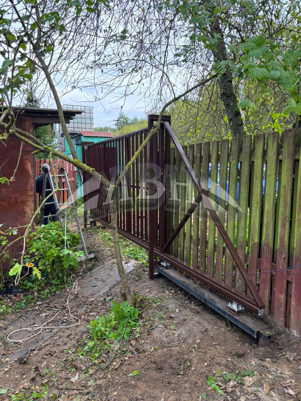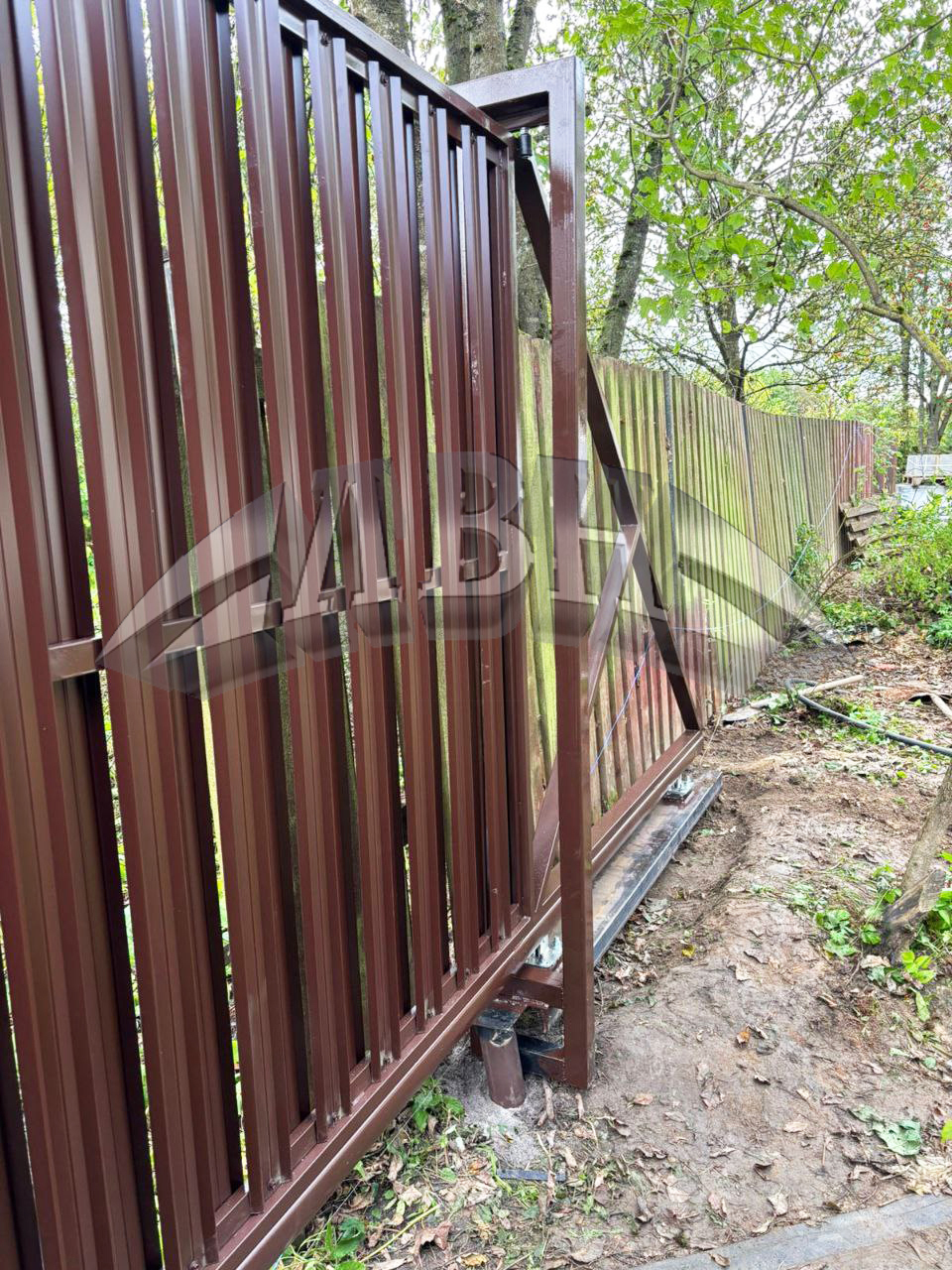 Откатные ворота из Евроштакетника с 2-х сторон, под ключ. Сданный объект - г. Гатчина, ул. Приоратская.