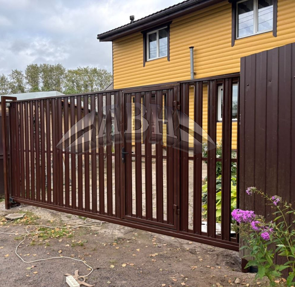 Откатные ворота из Евроштакетника, со встроенной калиткой под ключ, сданный объект - п. Мыза-Ивановка (Гатчинский р-н)