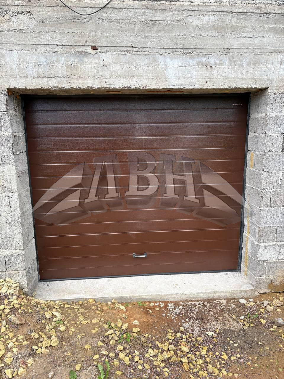 Секционные ворота с автоматикой, под ключ. Сданный объект - г. Гатчина, ул. Луговая