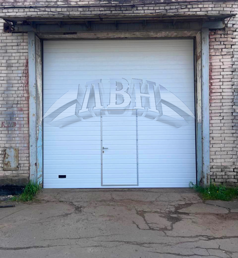 Ворота секционные под ключ со встроенной калиткой по центру, сданный объект - г. Пушкин.